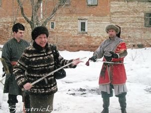 С другой стороны, на улице во дворе этнографического музея представители объединения «ТОРИИ» («Творческое объединение ролевые игры и история») показывали мастер-класс по историческому фехтованию на саблях. Сие действо очень органично вписалось в общую атмосферу выставки. Фехтовальщики, облачённые в костюмы польских шляхтичей, с волчьими шкурами в качестве украшения, делились историческими фактами, рассказывали и показывали технику боя, приёмы владения саблей и предлагали желающим подержать в руках стальной клинок, чем некоторые не преминули воспользоваться.