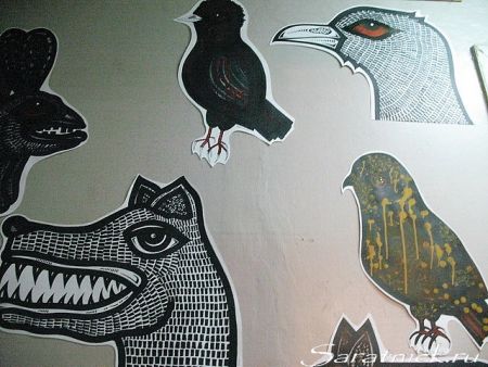 После завершения официальной части открытия выставки «Волк в помощь» посетители музея оказались перед непростым выбором. С одной стороны, начала своё выступление группа "Soilcult", заведовавшая в этот вечер музыкальным оформлением выставки. Звуки природы, вперемешку со звучанием бубнов, окарин, трещоток и других удивительных инструментов, наполнили помещение музея красивыми мелодиями, словно расширяя пространство. Хотелось более вдумчиво и внимательно познакомиться с работами художников (признаюсь честно, лично у меня перед открытием это знакомство получилось довольно беглым и поверхностным из-за нехватки времени).