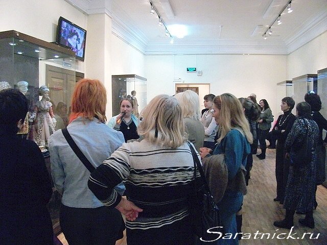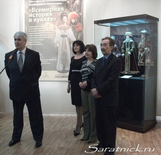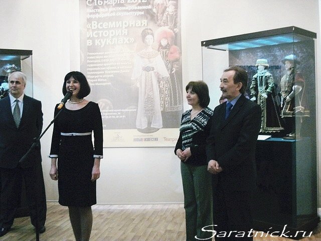 На открытии выставки присутствовал заместитель министра культуры Саратовской области В.А. Баркетов, который поблагодарил всех, кто работал над реализацией этого проекта и подчеркнул, что в Год российской истории данная выставка очень актуальна. Тут стоит отметить, что работа по организации этой выставки в Саратове была проделана немалая. В частности, для того, чтобы обеспечить необходимые условия хранения кукол, были заказаны специальные пыленепроницаемые витрины. Успешный опыт Саратовского областного музея краеведения может стать примером для музеев других городов России, жители которых, не сомневаюсь, также с большим интересом познакомились бы с экспонатами из столичного Музея кукол «Галерея Анастасии Чижовой».