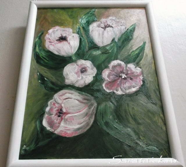 В творчестве Тамары Алексеевны Лапиной заметное место занимают цветы. На выставке можно увидеть одну из её первых работ маслом – «Тюльпаны», а также «Ирисы», «Лилии», «Хризантемы», «Нарциссы»…