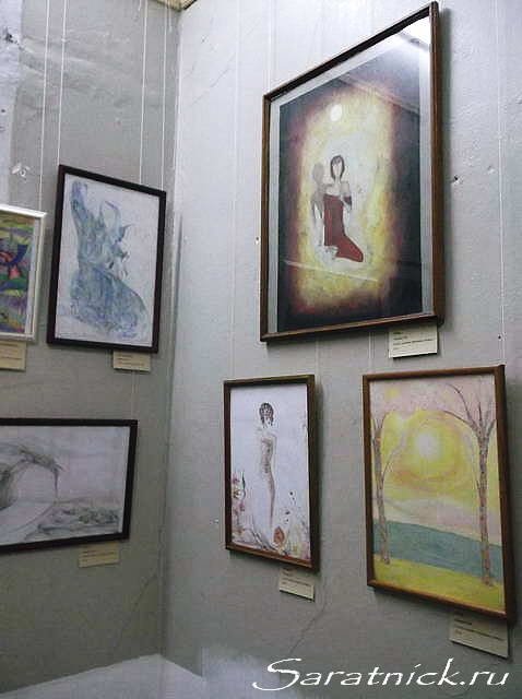 Картины Екатерины Лапиной, представленные на выставке «Семейная палитра», очень разные не только по технике исполнения, но и по своему настроению: романтическая «Музыка», жизнерадостная «Золотая рыбка», загадочный «Автопортрет», мрачная «Тень», философские «Древо жизни» и «Энергия Солнца», фантасмагорические «Дом –Человек – Черепаха» и другие работы из этой серии. Нельзя не отметить такие интересные работы как «Фламинго», «Кот», «Первая ступень». Перечислять и присваивать эпитеты к картинам Е. Лапиной можно долго, но есть ли смысл? Каждый, кто захочет посетить эту выставку в Саратовском этнографическом музее, найдёт в них что-то своё. Я же, ни в коей мере не претендуя на истину в какой-либо инстанции, лишь постарался рассказать вам о том, как происходило открытие выставки и поделиться своими впечатлениями. А пока предлагаю вашему вниманию небольшой фотоотчёт.