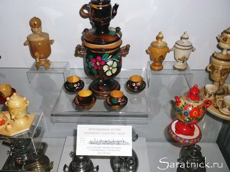 В соседней витрине можно увидеть небольшую часть удивительной коллекции сувенирных миниатюрных самоваров. Эту коллекцию, собиравшуюся на протяжении почти 30 лет, и насчитывающую 138 предметов, преподнесла в дар музею А.В. Кац.
