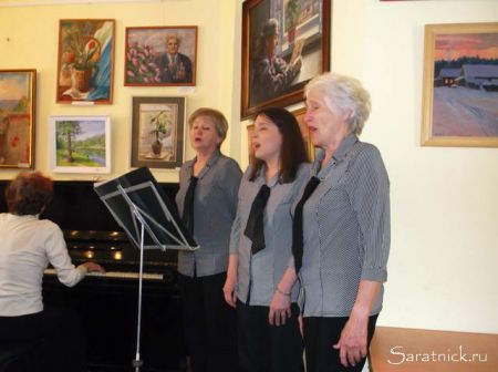 Поздравить художников клуба «Вернисаж» с открытием выставки пришли участники одного из творческих коллективов Дома работников искусств – ансамбля хоровой миниатюры «Музыка сердца». Они исполнили для участников и гостей выставки две песни, которые никого не оставили равнодушными.