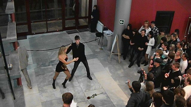 Основное блюдо «Ночи», которым, безусловно, является показ рекламных роликов из новой программы Жана Мари Бурсико, было приготовлено безупречно и подавалось тремя внушительными порциями. А всё, что происходило вокруг, весь сопутствующий антураж мероприятия, можно сравнить, если вновь прибегнуть к кулинарной терминологии, с приправами и соусами, основная задача которых подчеркнуть вкус главного блюда, добавить в него глубины и оттенков. И до начала показа роликов из новой коллекции «Синематеки» Бурсико, и во время перерывов в холле театра происходило немало интересного. Проводились различные конкурсы, фотосессии и перформансы от спонсоров, вручались призы и подарки, звучала приятная музыка. Ну а тем, кто хотел утолить не только интеллектуальный, но и обычный голод, был предложен большой выбор закусок и напитков – от прохладительных до вполне согревающих.